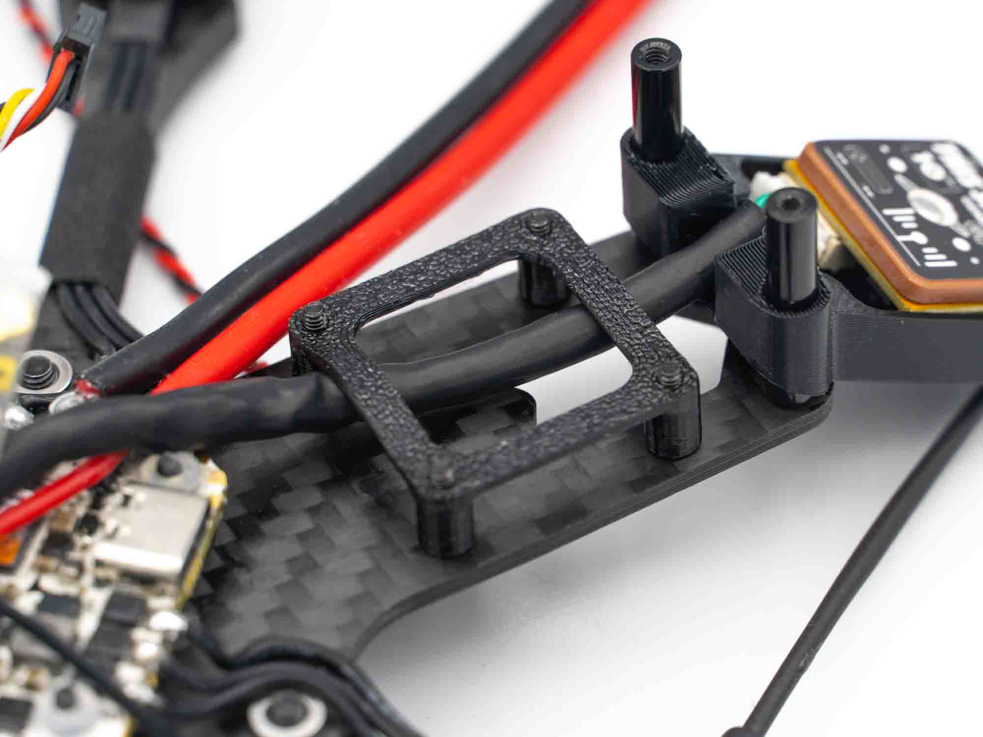 Push the capacitor into the tpu mount and install it in the front of the frame.