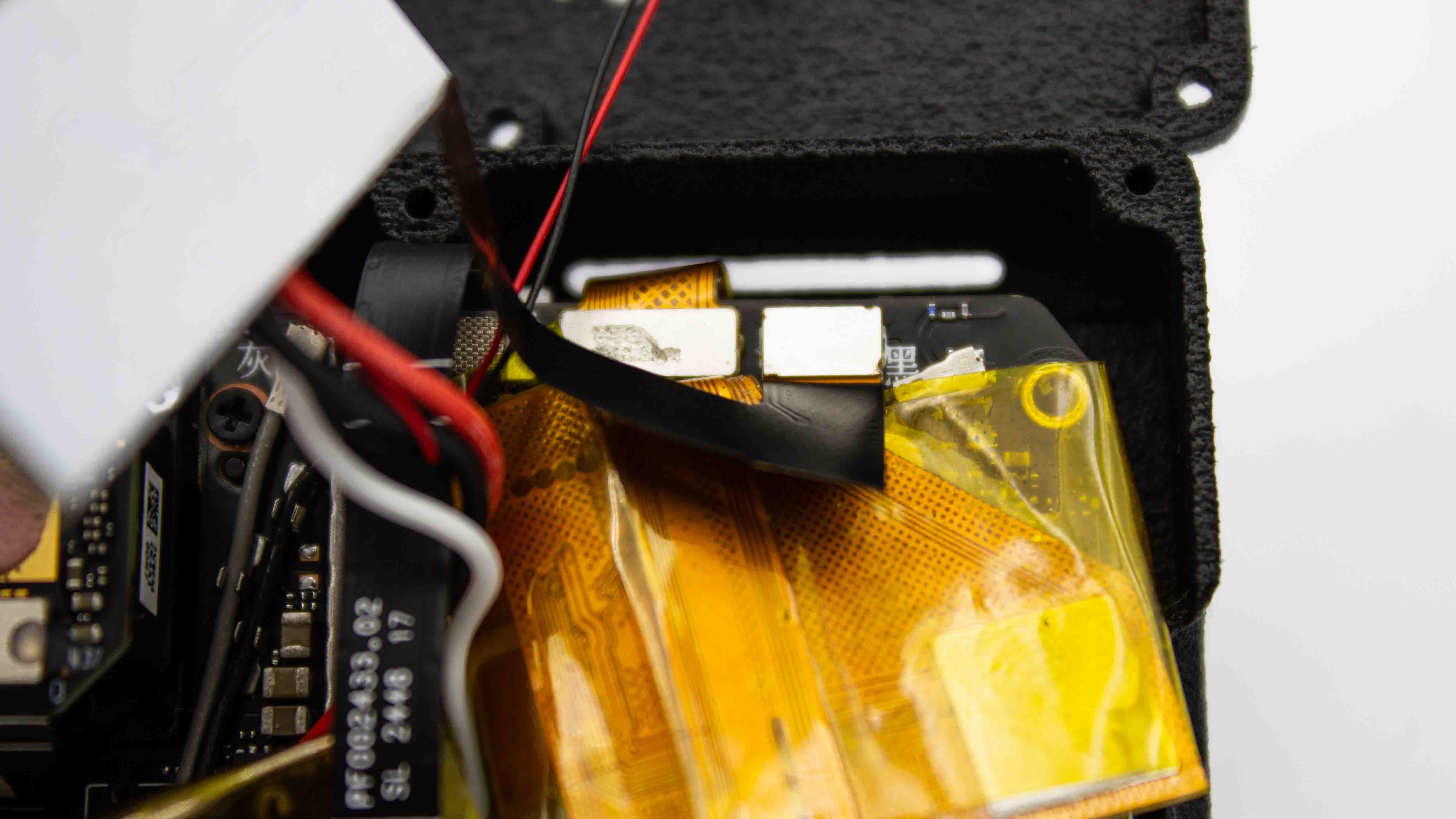 - Add the back display cable and tape it together to a compact package sitting ontop of the mainboard.