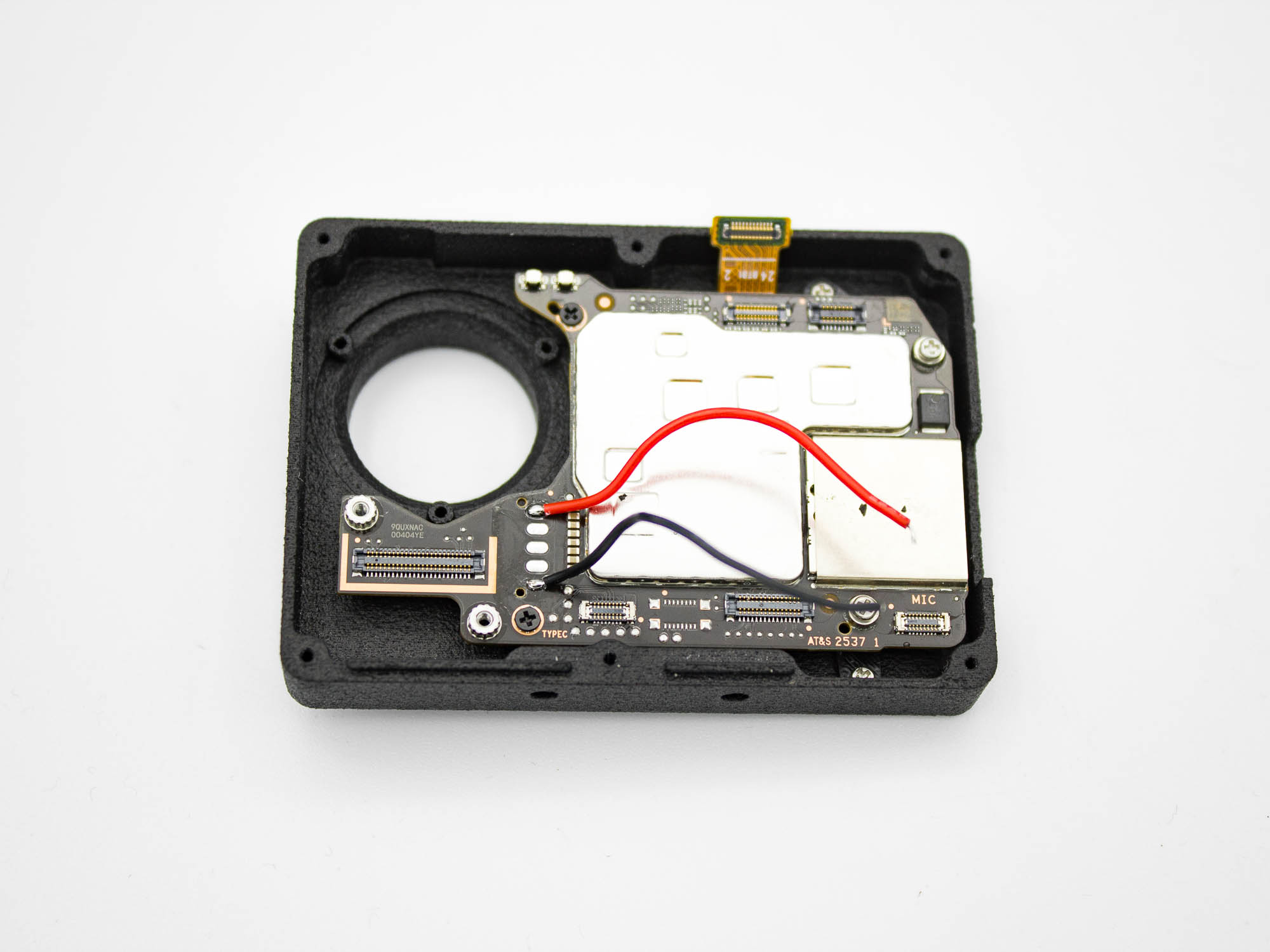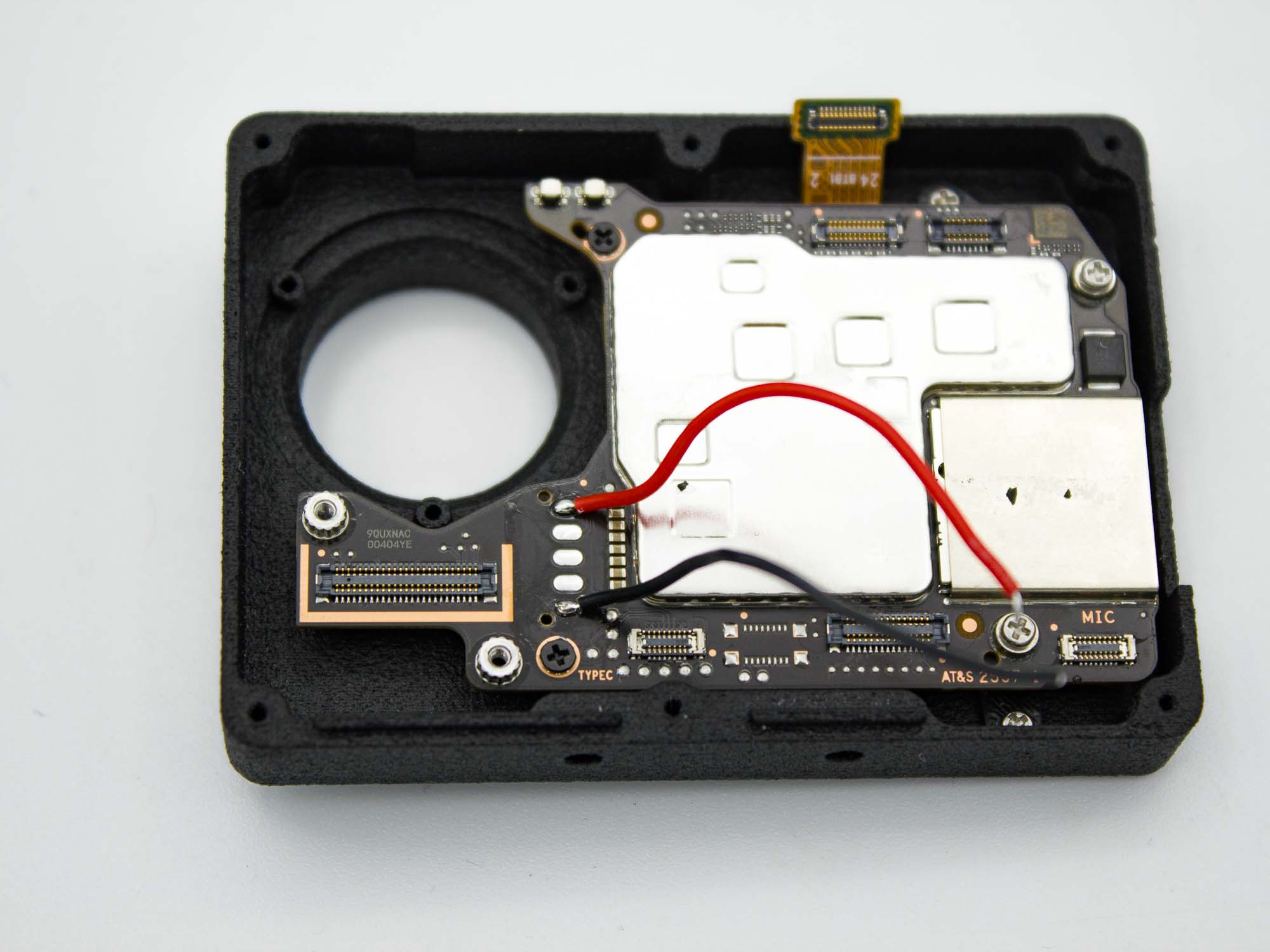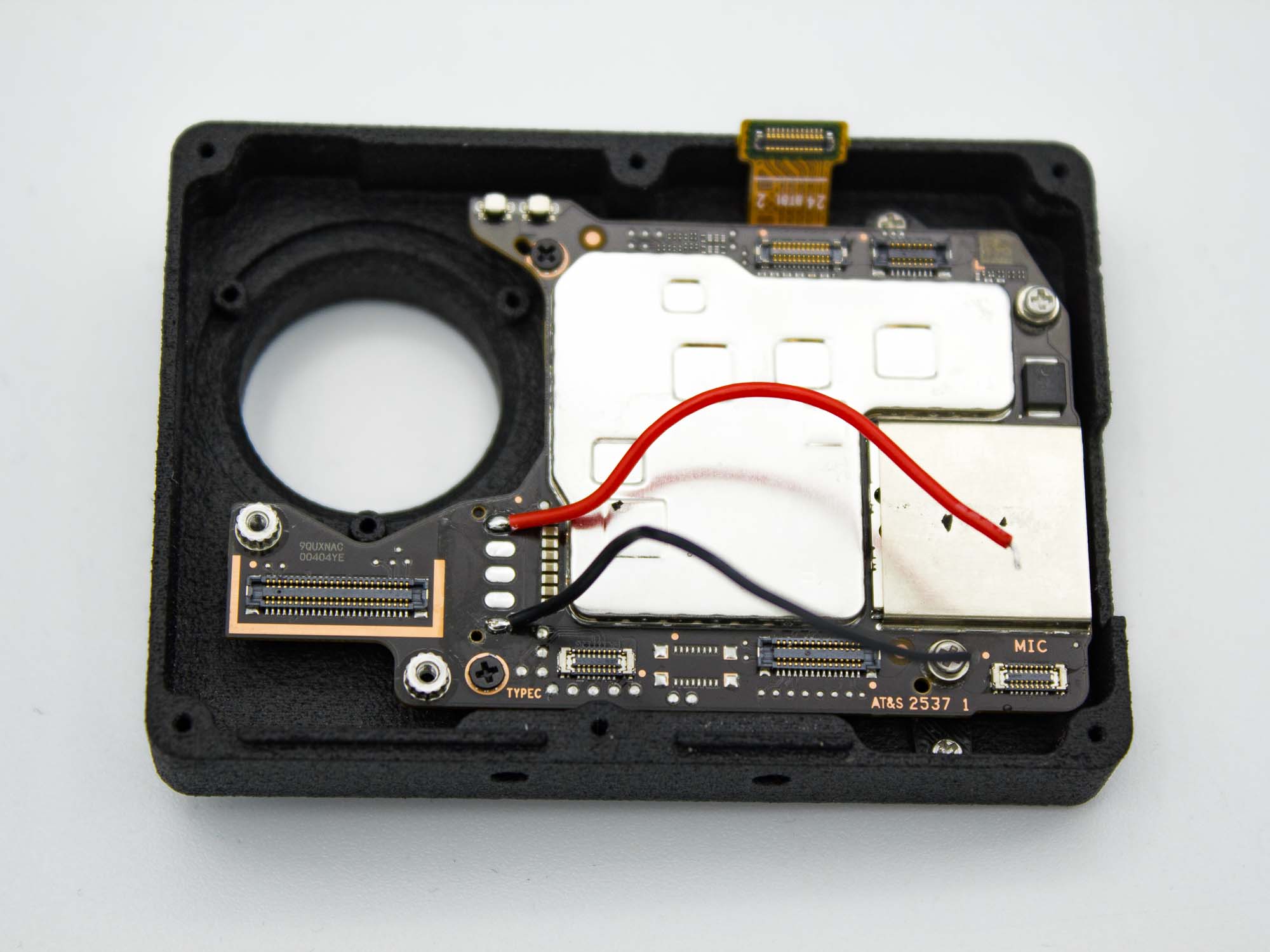 - Add the 3d printed bracket like shown and secure with two M1.4 x 3mm screws