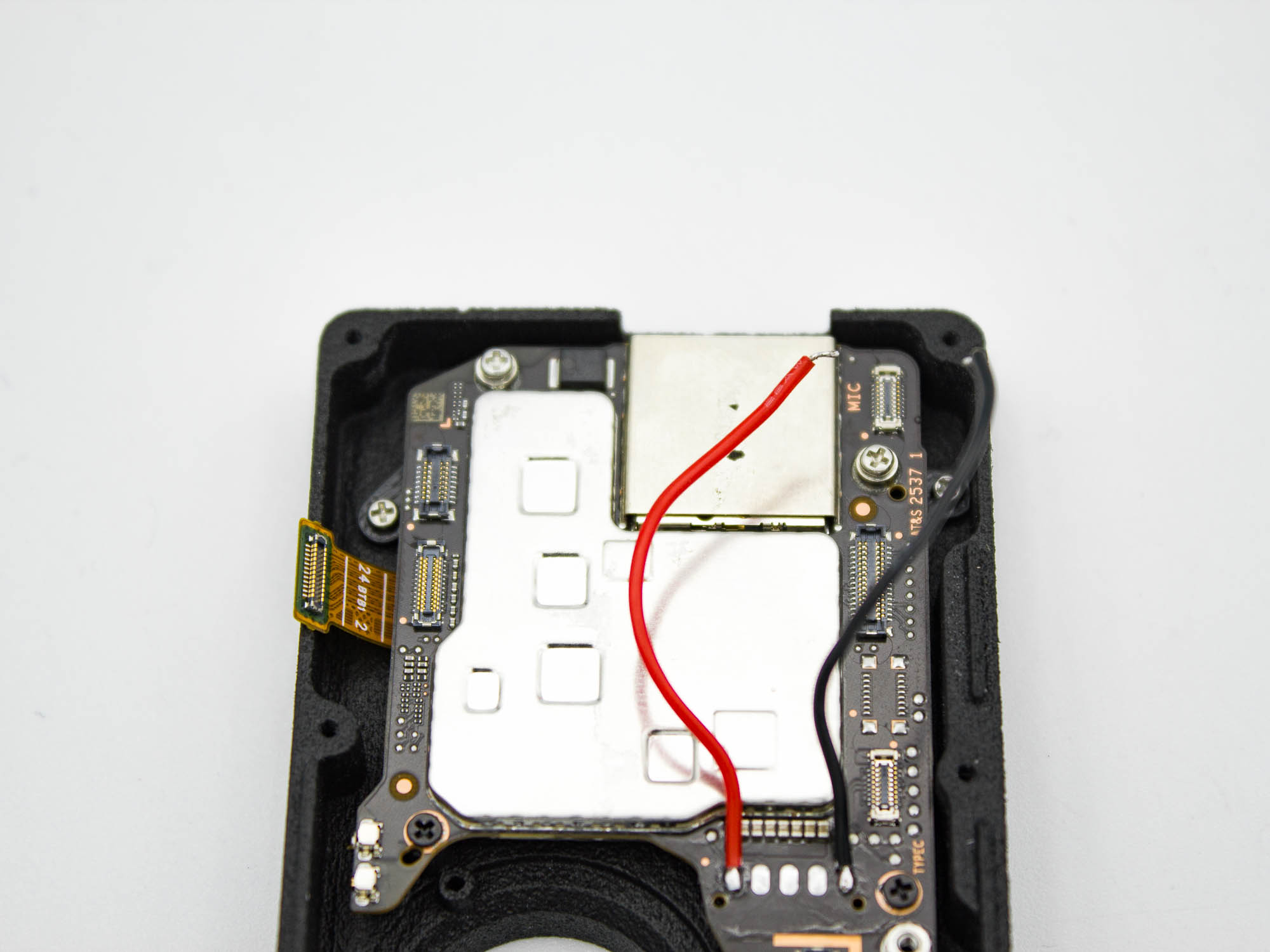 - Remove the foam covering the microphone slot.