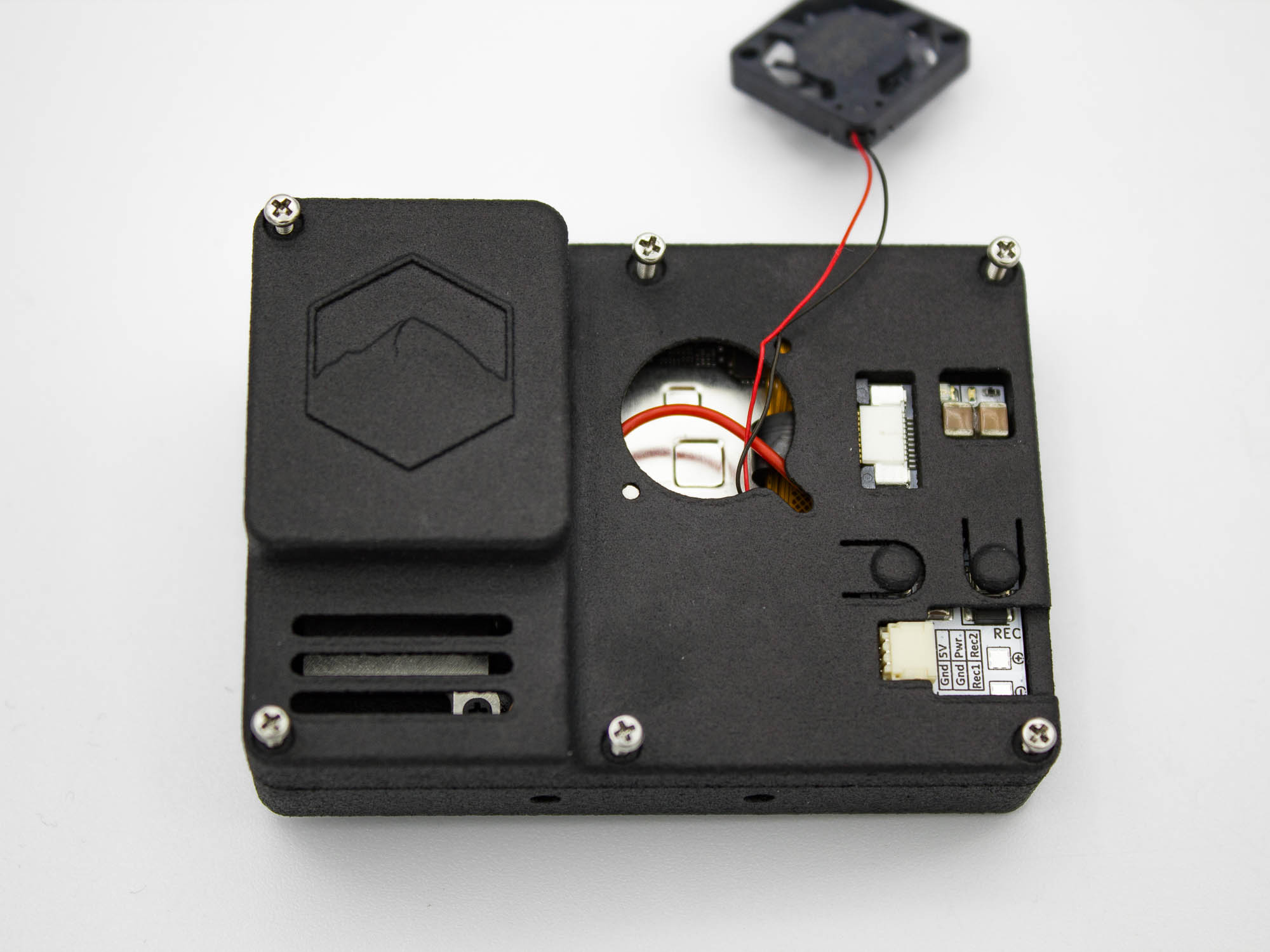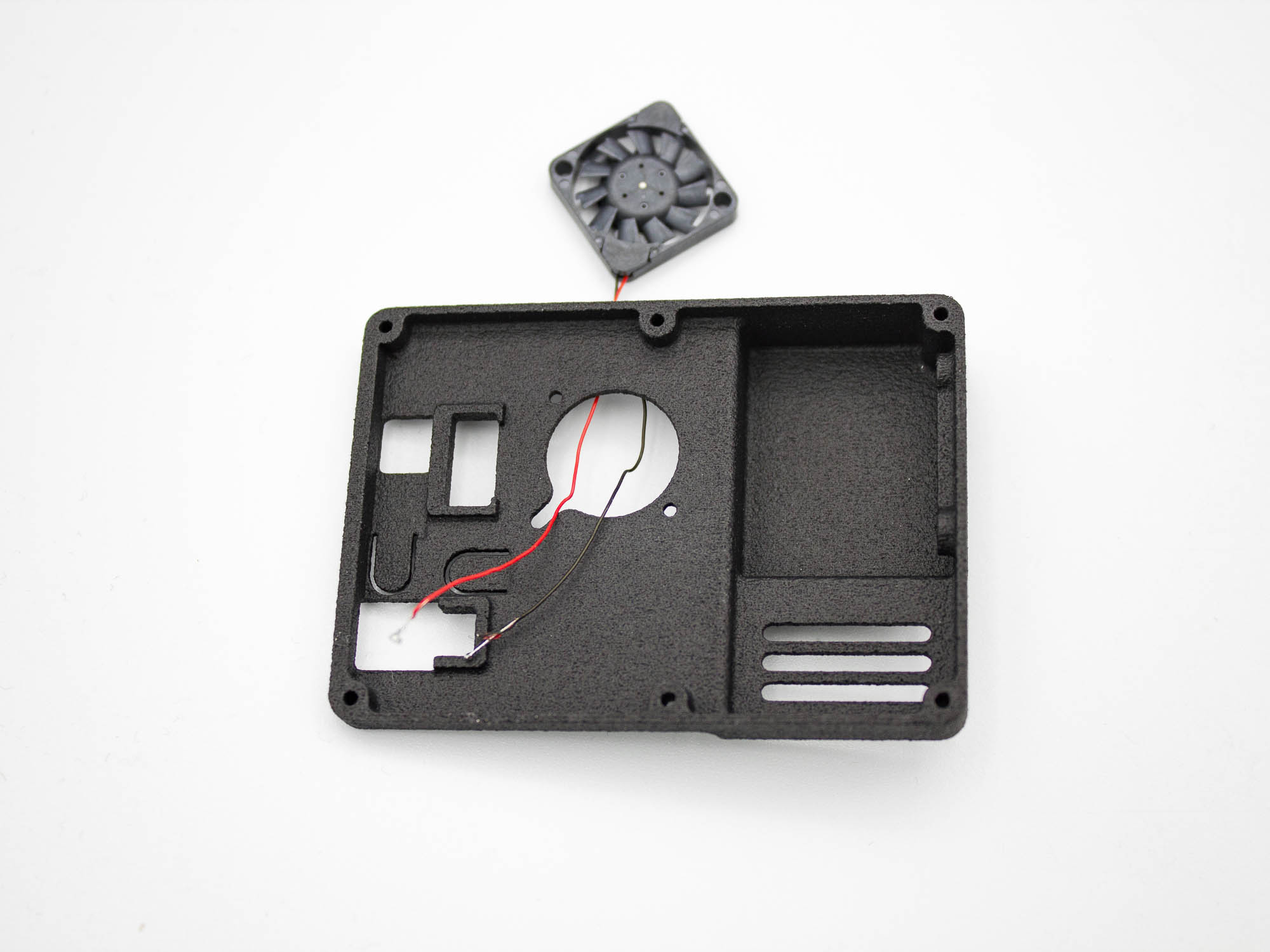 - Attach the cooling fan to the back case with M2*5 screws using an M2 hex tool.